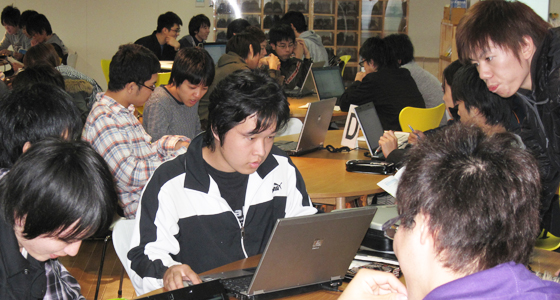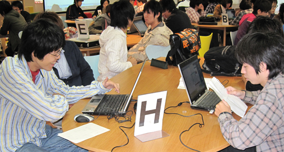 平成21年度後期計算数理工学PBLの授業がスタートしました。総合システム工学科2年生が履修するこのPBL科目は、全体を4期に分け、各期において設定された数学・物理の課題に対し、Mathemetica、Excel等のソフトを用いてグループ単位で解決に取り組みます。