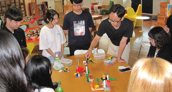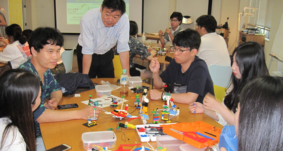 平成30年8月10日、韓国・東義大学校の日本での研修の一環として、レゴ®シリアスプレイ®によるワークショップをプロジェクトラボラトリで実施しました。学生20名が参加しました。LSPは、レゴ®ブロックを活用したユニークな問題解決手法、コミュニケーション手法です。前半は「自信を持って言える私の強み」「この研修で習得したもの」後半は「私達が感じている現代社会」をレゴブロックを使って表現しました。最後は、前半の個人モデル2作品をチームモデル「私達が感じている現代社会」に繋ぎました。3時間にわたる熱の入ったワークショップが行われ、とても有意義な研修となりました。