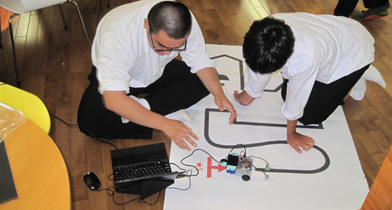 平成30年9月14日、山口県立萩高等学校の模擬講義がプロジェクトラボラトリで行われました。1年生40名が参加しました。中尾PBL教育推進室長より、大学説明が行われた後、二人一組になり、ブロックロボット製作を行いました。PCを用いてプログラミングを行った後、ロボットカーを走行させました。基本動作に加えて色々な動きをプラスして楽しむ姿が見られました。最後はライントレース走行にもチャレンジしました。試行錯誤しながらプログラミングを改良する等、真剣に取り組む姿が見られ、2時間にわたる有意義な講義となりました。