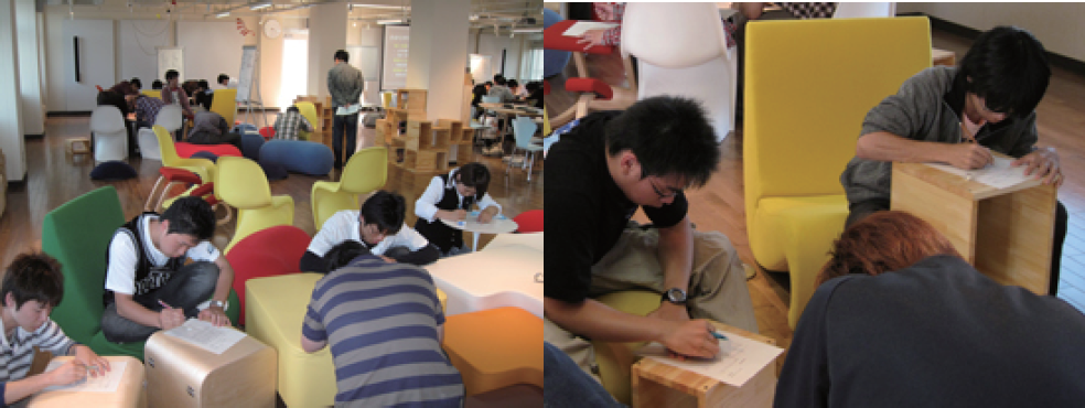 どこで、どんな風にディスカッションしてもかまいません。椅子が机になったり、本棚が机になったりしてもいいのです。