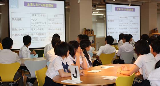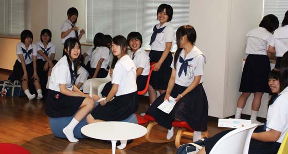 平成22年7月9日、福岡県立宗像高等学校3年生の皆さんが来校しました。前半64名・後半68名に分かれ、スクリーンやパンフレットを見ながら熱心に学科の説明を聞いていました。その後ラボラトリのソファで自由にくつろいでもらい、分刻みのスケジュールの中、束の間の笑顔も見られました。
