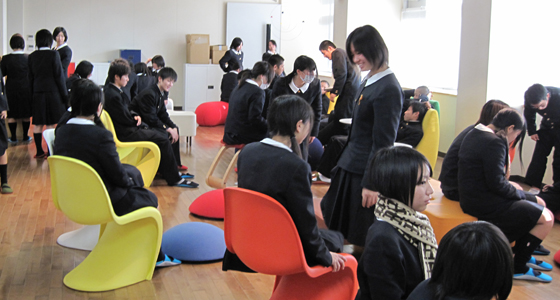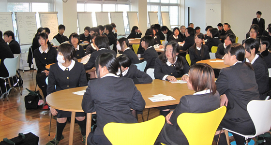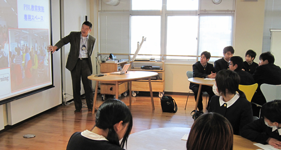 平成22年12月20日、福岡県立糸島高等学校から1年生66名の皆さんが来校しました。初めて目にする大学の講義室とは思えないプロジェクトラボラトリの雰囲気に女子生徒から思わず歓声が上がりました。また、こちらも初めて耳にするPBL教育プログラムの説明では、これから大学生に求められるコミュニケーション能力の必要性について全員熱心に耳を傾けていました。