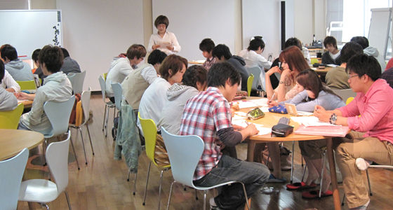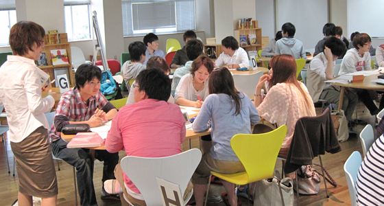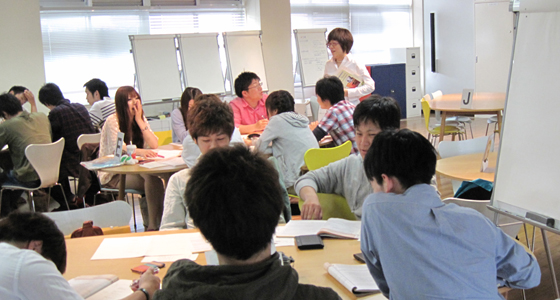 平成24年度前期人間科学・総合英語の授業がスタートしました。総合英語Bでは、英語による設問を聞き、各自が回答していく形式で授業が進められました。また、総合英語Cではグループに分かれ、TOPICとMESSAGEのキーワードを挙げながらフリップチャートを用いてディスカッションを行い、グループごとに発表を行いました。
