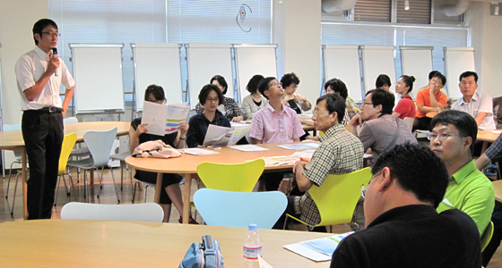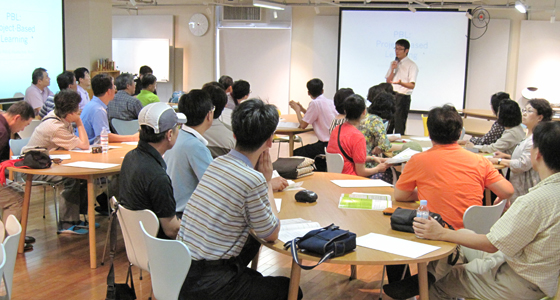 平成24年8月21日、韓国のDoowon工科大学より教授、准教授、講師の方々計38名が来校されました。井上PBL教育推進室副室長よりPBL教育プログラムについての概要や、現在プロジェクト活動を行っている総合システム工学PBLの授業内容について説明を受けました。猛暑の中来校された皆様ですが、熱心に説明を聞かれ、プレゼンの後も積極的に質問されるなど、PBL教育プログラムに高い関心を示されていました。