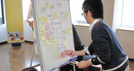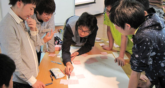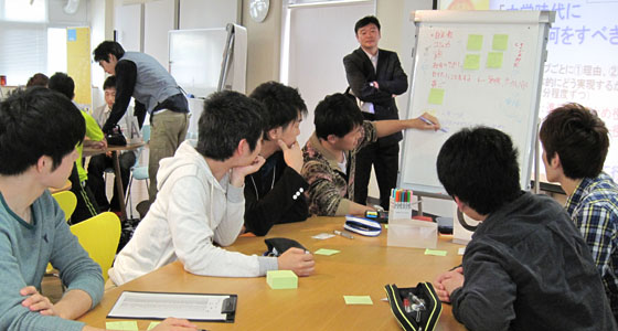 平成21年度前期総合システム工学入門PBLの授業がスタートしました。通常の座学とは異なり、プロジェクトラボラトリ内で思い思いの場所に移動し、グループディスカッションを行いました。今回「大学時代に何をすべきか?」というテーマに基づき、ブレーンストーミングによる意見の抽出、およびその意見を論理的に整理するKJ法を体験しました。各グループとも制限時間いっぱいまで熱のこもった討論を行い、活気のある授業となりました。また。