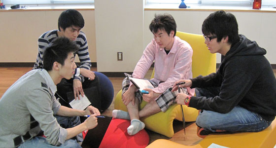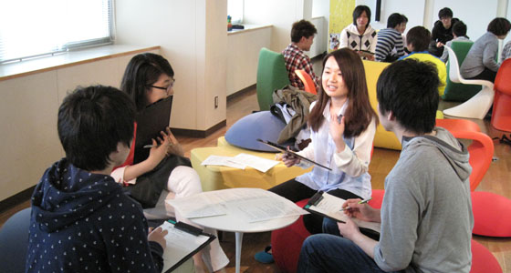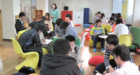 平成25年度前期人間科学・日本事情Aの授業がスタートしました。中国・韓国・台湾からの留学生を交え、グループに分かれてディスカッションを行いました。内容は「一人暮らしの学生を心配する親たち」という記事を読んで、過保護気味の親と、大学の保護者支援について学生の立場から考えました。各国の家庭事情から興味深い話を聞くことができ、活発な意見交換が行われました。