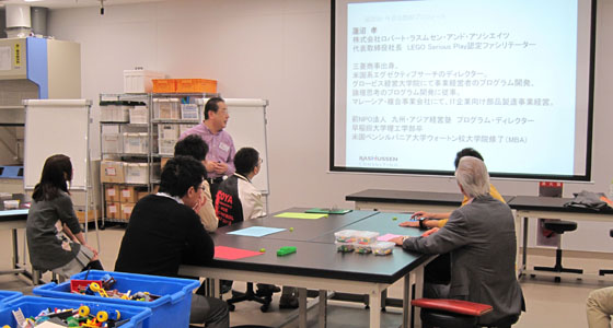 平成25年10月17日、「レゴシリアスプレイ」ワークショップを開催しました。株式会社ロバート・ラスムセン・アンド・アソシエイツ代表取締役社長蓮沼孝氏をファシリテーターに迎え、教職員・学生25名が5つのグループに分かれて参加しました。レゴを通して発表や質疑応答を行うなど、これまで体験したことのないグループワークとなりました。「考えてから創る」のではなく、創作する過程で自分の意志やアイデアか整理され、レゴで表現されるというユニークな手法で、プロジェクト活動や就職活動時の研修など、色々な場面で活用できるとの声が聞かれました。また、4時間にわたるワークショップでしたが、参加者からは時間が足りないほどあっという間に修了したとの感想も聞かれ、アンケートには次回開催を希望する意見も多く寄せられました。