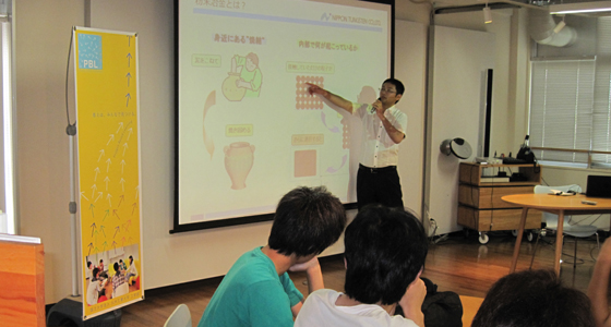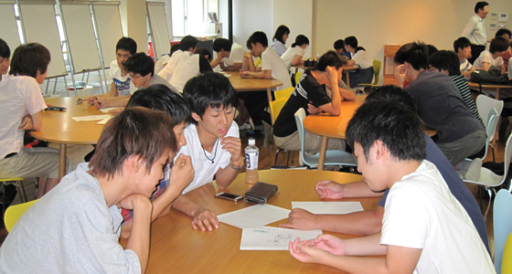 平成27年度総合システム工学入門PBL授業の一環として特別講演がありました。今期二回目となる今回は「企業×PBL」と題して、総合システム工学科OB吉原貴裕様(日本タングステン株式会社)による講演が行われました。講演では、分野を問わず、職場でPBL的要素を感じる場面が数多くある現状について具体的な解説の後、いくつかの事例をもとに、現状分析や対策についてグループディスカッションを行いました。同じ学科卒の先輩から、PBLで修得したものが就職後どのような場面で活かされ、また強みになっているのかを聴くことができ、大変有意義な時間となりました。