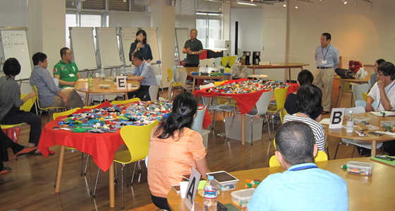 平成27年9月6日、練成会-LSP修了認定ファシリテーター研修会-がありました。LSPはレゴ®ブロックを使って全員参加、チームの叡智を完全に出し切る会議を実現するためのユニークなメソッドです。このLSPのファシリテーションをすることのできるLSP修了認定ファシリテーターが全国から集まり、ブラッシュアップを目的とした研修会「練成会」を九州で初めて本学のプロジェクトラボラトリにて開催することとなりました。中尾PBL教育推進室長も含め22名の参加者はブロックを使いながらグループ討議、意思決定などを行い、また各自がこれまで実施した事例から問題点を共有するなど熱のこもったワークショップが展開されました。