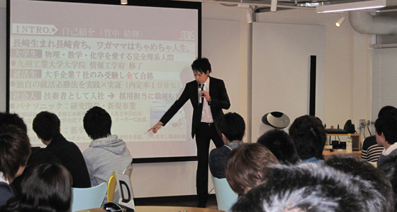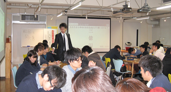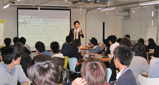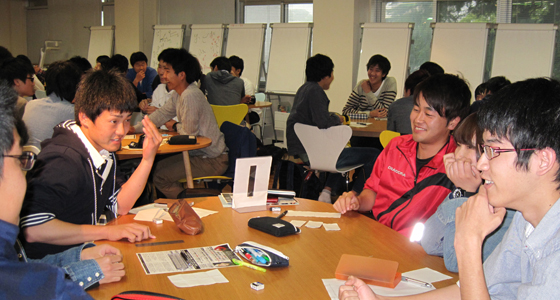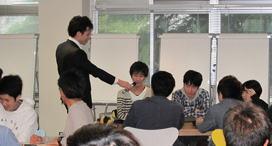 平成28年度総合システム工学入門PBL授業の一環として、昨年度に引き続き、本学OBの竹中結輝様による特別講演が行われました。「SelfDesign」と題し大学時代での体験を踏まえ、大学一年生からキャリアを意識し、就職活動に対する早い段階からの準備の重要性など、学生にとって大変興味深い内容でした。また就職の面接に関連して、いかに自分の話したいことを相手から引き出してもらうか、グループごとにポイントを競い合う形でディスカッションを行うなどユニークな演習も盛り込まれ、活気溢れる講演となりました。今年度は2回の開催となり、次回は7月21日に実施予定となっています