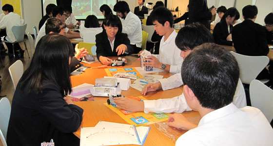 平成28年10月27日、山口県立下関西高等学校から2年生39名の皆さんが来校しました。総合システム工学科の坂井先生による体験学習が、プロジェクトラボラトリにて行われました。3人1組で「ブロックロボット」の製作を体験しました。ロボカーを組み立て、走行させ、最後はライントレースを行いました。50分という限られた時間でしたが、楽しい雰囲気の中にも真剣に取り組む姿が見られました。 /p>