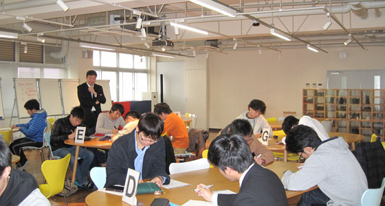 平成28年12月14日、本学情報工学部OBの竹中結輝氏による就職活動セミナー「就活LIVEゼロ」がありました。誰も教えてくれない就活のリアルを学生・企業の両目線で伝えていただきました。二人一組で自己紹介をし合い、互いに録画し、自分が第三者からどう見られているかを自分の目で確認しました。「現実の自分」と「理想の自分」を考え、書き出し、自分を理解した上で、目標設定することを考える貴重な時間となりました。一般論ではなく、実体験を基に本音で語る竹中氏のセミナーは、学生にとってとても興味深い内容で、今後の就職活動の参考となりました。