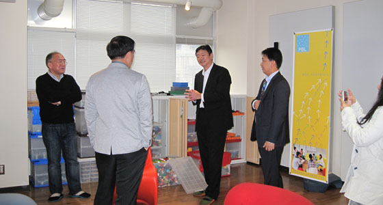 平成28年12月14日、PSITEソリューション3地区支部の代表者および主要メンバーで、フィリピン国内大学の学部長クラスの方(7名)が来学され、プロジェクトラボラトリを視察されました。中尾PBL教育推進室長より、PBL教育プログラムの概要やプロジェクトラボラトリで行われている授業内容等について、説明を受けながら、熱心に質問されていました。PBL教育プログラムに高い関心を示されていました。