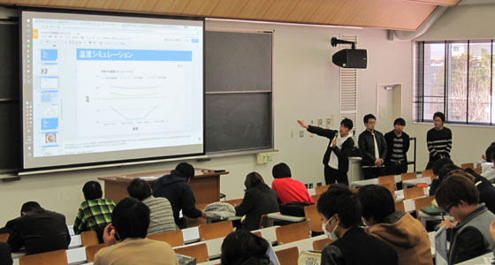 平成29年1月31日、C-3C講義室にて、総合システム工学PBL成果発表会がありました。全12チームが年間を通じて取り組んできたプロジェクトについてプレゼンテーションを行いました。発表後は、活発な質疑応答が行われました。教育および学生の評価点により、3月5日(日)開催のPBL合同成果発表会に1チームが出場します。
