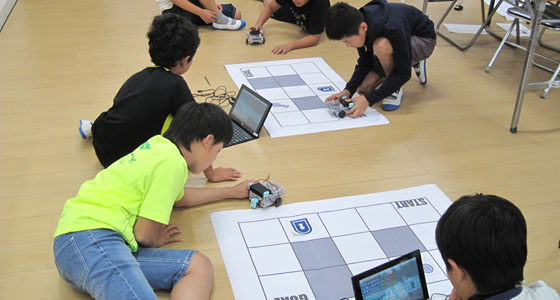 平成28年度第二次補正予算「若年層に対するプログラミング教育の普及推進」事業として、昨年度に引き続き九州・沖縄地区の実証モデルとして、本学の教育プランが採択されました。学生メンターが、実証校である島原市立第五小学校にて5.6年生30名を対象に、9月28日,9月29日,10月5日,10月19日(計4回)プログラミング教育を実施しました。ブロックロボットで自動車を作成し、プログラミングを用いて自由に動かせることを学習していただきました。最終日には、ロボカーで迷路のゴールを目指しました。試行錯誤しながら改良する等、真剣に取り組む姿が見られました。